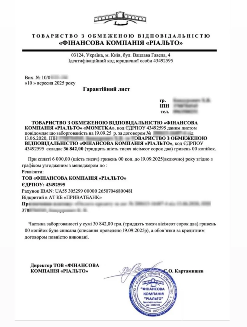 Компанія допомагає клієнтам законним шляхом реструктуризувати борги — змінити умови кредитних зобов’язань так, щоб вони стали посильними для погашення.
